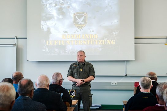 Es ist ihm ein Vergnügen diesen Verband heute vorzustellen und vor allem unser Flaggschiff, die Hercules C 130. Bevor diese Maschine abhebt, ist zunächst viel Bodenarbeit erforderlich. Wir können mit diesem Flugzeug auch eine mobile Intensivstation fliegen und eventuell verletzte Kameraden aus dem Unglücksorten zurück in die Heimat bringen.
