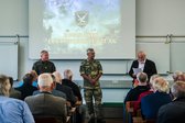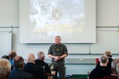 Der Militärkommandant von Oberösterreich, Brigadier Muhr hat uns im Fliegerhorst „Herzlich Willkommen" geheißen und uns ua. gesagt, dass der Fliegerhorst Vogler die größte Liegenschaft des Bundesheeres ist. Er sprach auch den Dank an Oberst Klecatsky für die sehr gute Beziehung zu den oberösterreichischen Feuerwehren aus und er sagte, dass uns Oberst Klecatsky das heutige Programm näherbringen und uns auch den Tag über begleiten wird.